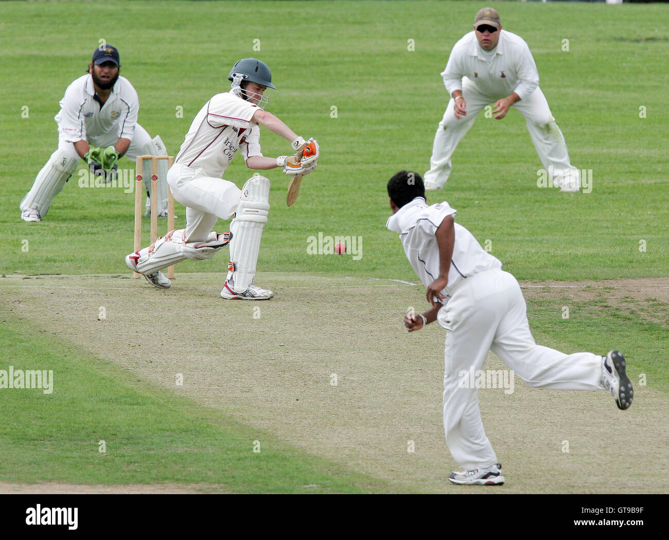 A Krishnan Of Ardleigh Green Bowls To J Russell Ardleigh Green Cc Vs Colchester West Essex Cc Essex Cricket League 28 07 07 Stock Photo Alamy